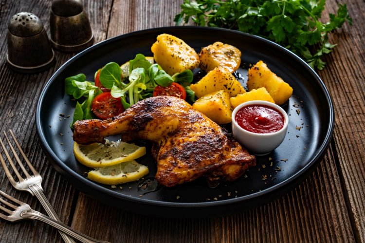 Тебе понадобятся: 600 г курицы, 400 г картошки, соль, специи.