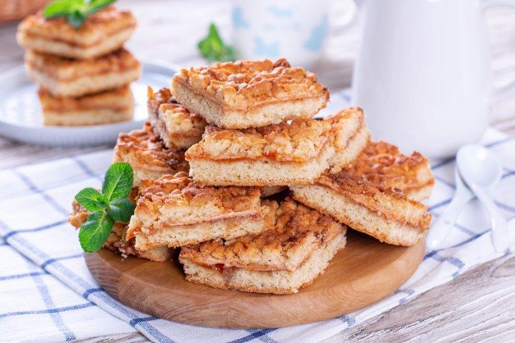 Тебе понадобятся: 50 г сливочного масла, 1 яйцо, 100 г сахара, 200-220 г муки, 1 ч.л. разрыхлителя, 200 г густого варенья.