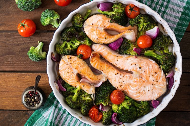 Приготовление: Замаринуй стейки горбуши в соевом соусе и любимых специях на 15 минут. Отдельно смешай овощи с оливковым маслом, солью и ароматными травами. Выложи все вместе в форму для аэрогриля и запекай 25-30 минут при 200 градусах.